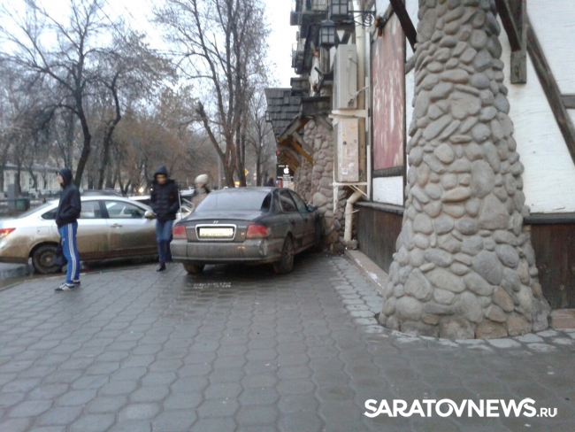 Сегодня, 22 декабря, рано утром жители Саратова стали очевидцами происшествия: легковой автомобиль "Хундай" врезался в стену "Улья" на углу Рахова и Московской. Это произошло около 7:30.