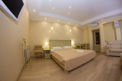 "Акрополис" раположен внутри тихого квартала всего в 17 минутах езды от центра нашего города. Гостиницу отличают стильные интерьеры и необычное оформление главного зала: потолок в нем выполнен в виде небесного свода. Если вы решите остаться на всю ночь, вас ждут комнаты с элегантным дизайном, оснащенные современным оборудованием. Особой популярностью пользуется спецпредложение отеля — изысканный номер для новобрачных.