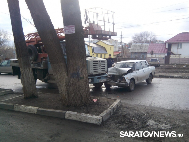 В Октябрьском районе Саратова столкнувшиеся машины блокировали движение по улице Клочкова. Как сообщают очевидцы, авария с участием автоподъемника и "пятерки" произошла неподалеку на перекрестке улицы со 2-м Детским проездом. В результате аварии серьезно пострадала передняя часть отечественной легковушки, в настоящий момент она стоит поперек дороги, блокировав движение машин.