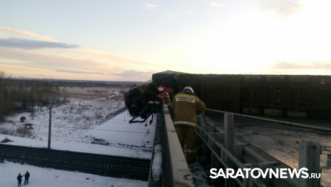 Направлявшийся в Саратов грузовик потерпел крушение в Самарской области: кабина пробила ограждение моста, шофер выпал вниз и разбился насмерть. Подробности происшествия излагает пресс-служба ГУ МВД России по соседнему региону.