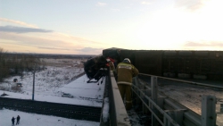 По предварительным данным, вчера, 27 декабря, 61-летний водитель грузовика "Мерседес" ехал по мосту над железнодорожными путями у поселка Ерик Самарской области. По неизвестной причине он вывернул руль и пробил кабиной своего большегруза борт ограждения. Мерседес упал на бок, а водитель выпал из кабины и сорвался с моста. Падение стало для него смертельным.