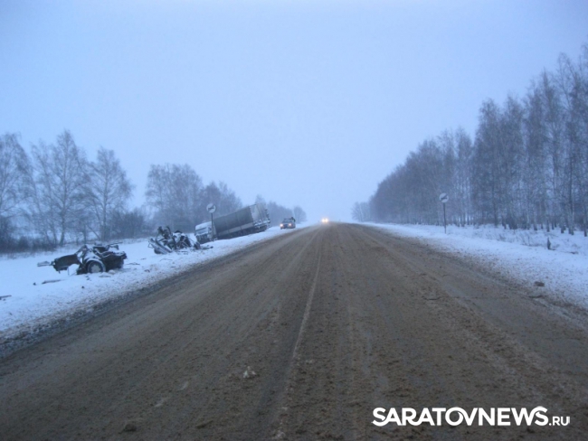 В 1:14 минут на 384-ом километре автодороги М-6 "Каспий" в Мичуринском районе столкнулись "Фольксваген Пассат" и грузовик "Рено Преимум" с полуприцепом "Кроне". По предвариетльным данным, 36-летний водитель легкового авто, житель Саратовской области, превысил скорость, безопасную для сложных зимних условий, выкатился на встречку и допустил столкновение с фурой, которой управлял 40-летний шофер. Погибли водитель Фольксагена и его 48-летняя пассажирка. Медикам "скорой помощи", прибывшим на место, оставалось лишь констатировать их смерть.