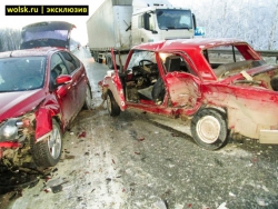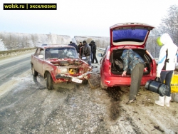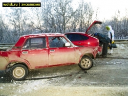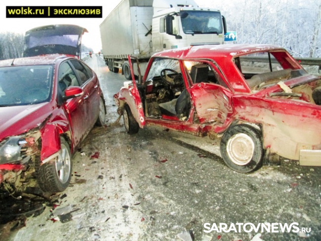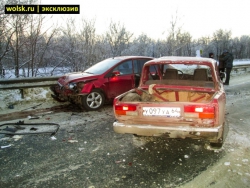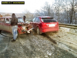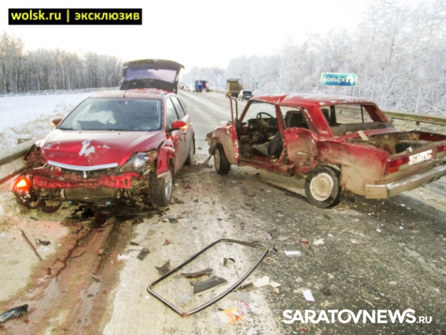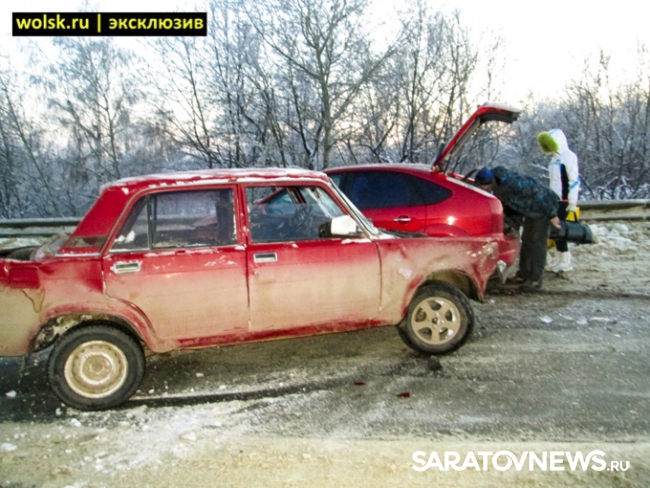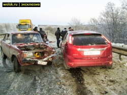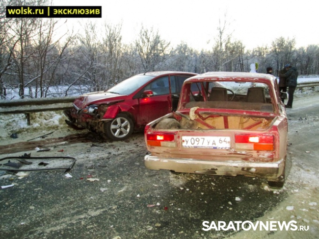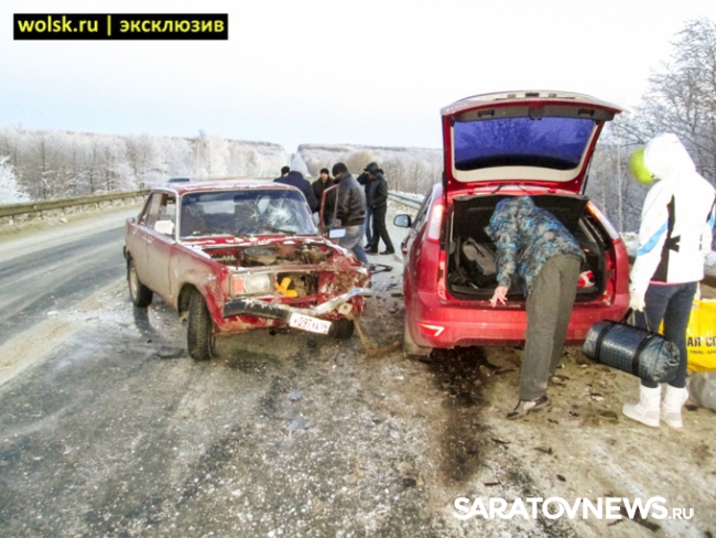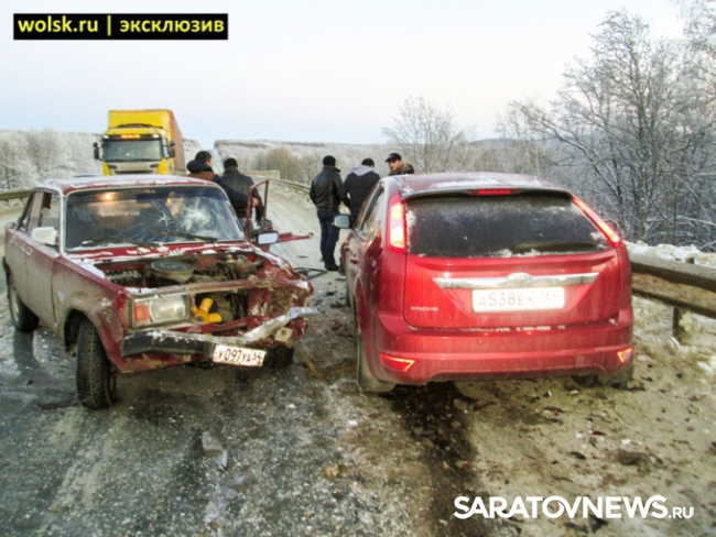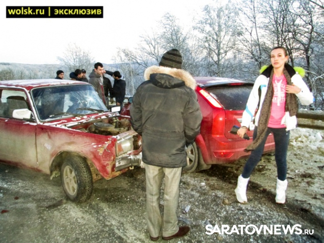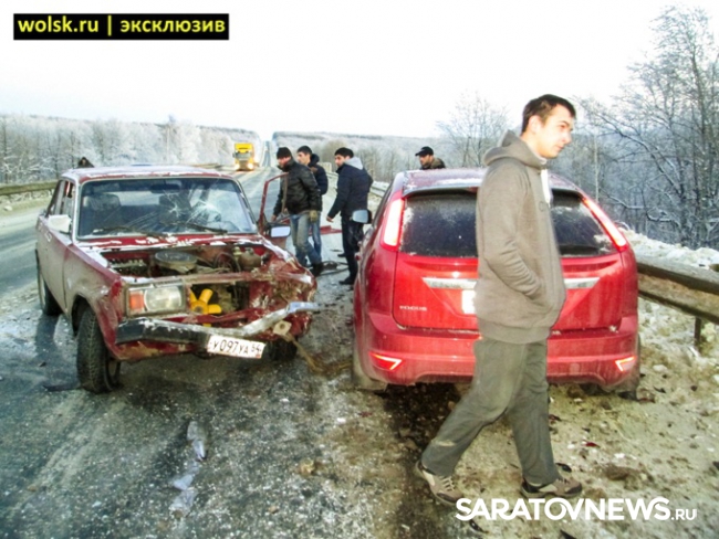 Wolsk.ru сообщает немного другую версию произошедшего. По их версии, молодая пара из Саратова ехала на "Форде" на горнолыжный курорт в Хвалынск, когда в них въехала отечественная "классика". По словам очевидца, "семерку" тащила на тросе другая машина. Во время движения ВАЗ занесло, и он врезался в иномарку. Сидевший за рулем "семерки" мужчина разбил голову. А сильнее всех пострадали транспортные средства: они получили серьезные механические повреждения.