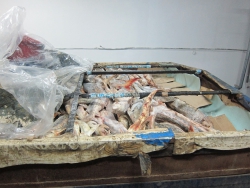 Как сообщают силовики, пограничники проверили "КамАЗ", который направлялся из Уральска в Саратов, и в кузове обнаружили тайники, из которых извлекли 2700 килограммов рыбы осетровых пород, занесенных в Красную книгу.