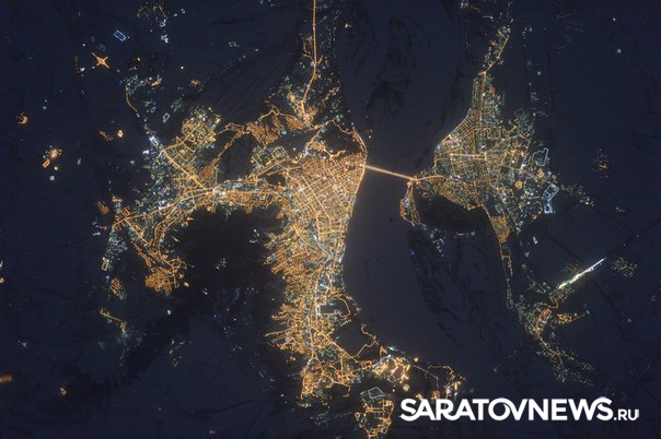 Российский космонавт Сергей Волков опубликовал на своей странице в соцсети "ВКонтакте" фотографию Саратов и Энгельса, сделанную с борта Международной Космической станции.