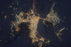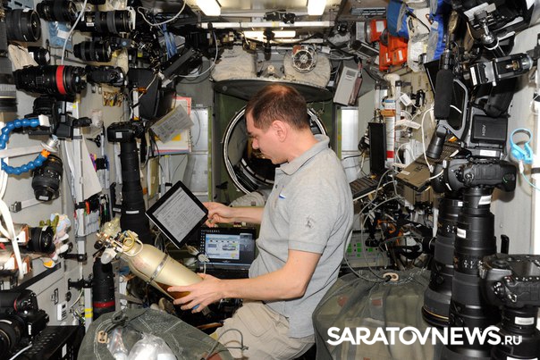 "На одной фотографии сразу два горда - Саратов и Энгельс, а также видно Волгу. Буду стараться снимать города, которые вы просите, но, к большому сожалению, траектория полета станции охватывает очень маленькую часть нашей страны. Поэтому не каждый ваш родной и любимый город возможно сфотографировать из космоса", - написал космонавт под фотографией.