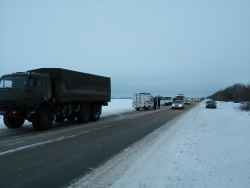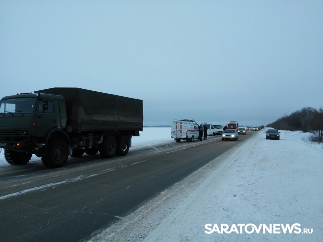 На трассе Энгельс-Эршов произошла авария, с участием пассажирского рейсового микроавтобуса "Мерседес" и военного "Камаза". Как сообщили в отделе пропаганды ГИБДД по Саратовской области, дорожный инцидент произошел около 16:00.