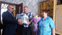 Рабочая поездка началась с визита облдепа к семейной паре – Евгению Николаевичу и Вере Ивановне Лештаевым, проживающим в Романовке, и отпраздновавшим в январе этого года 45-летний юбилей совместной жизни. Сергей Борисович поздравил супругов с этим замечательным событием и помимо теплых слов в адрес юбиляров и букета цветов подарил им набор современной бытовой техники.