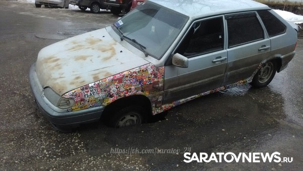 Напомним, 22 декабря влетевшая в яму маршрутка 81 парализовала движение из Елшанки в центр Саратова, 17 декабря во дворе дома № 43 по улице Тракторная "Лада Калина" с номерами Самарской области угодила правым передним колесом в вымоину, а на Ипподромной произошло несколкьо похожих аварий подряд.