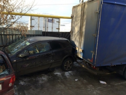 Как сообщают очевидцы, большегруз спускаясь по улице собрал сразу четыре машины – "Матиз", "Опель Астра" и две грузовые "Газели".