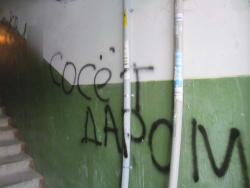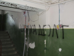 Как рассказал представитель жильцов Виктор Черваков, ночью 12 февраля 2016 года неизвестные расписали весь подъезд дома №8 скабрезными надписями и рисунками. Помимо оскорблений в надписях встречались требования вернуть долг. Были испорчены входные двери на большинстве этажей и входная дверь подъезда.