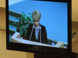 После этого из зала стали выходить и другие представители администрации, которые ранее выступали с докладом, в том числе и.о. главы комитета по финансам Александр Струков, который представлял поправки в бюджет и все главы районных администраций. Одной из первых ушла замглавы администрации Юлия Литневская.