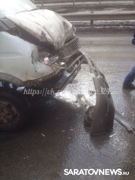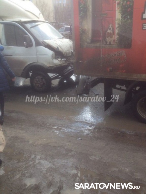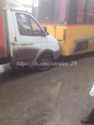 Грузовая "Газель" не успела остановиться перед резко затормозившим автобусом №11, после чего в нее врезался не сумевший среагировать вовремя водитель другой "Газели". В результате три авто встали "паровозиком". У обеих "Газелей" значительно повреждена передняя часть.