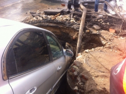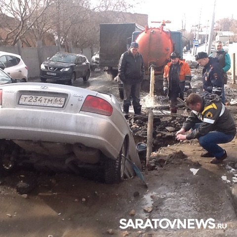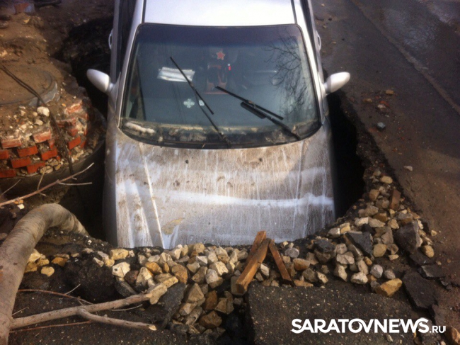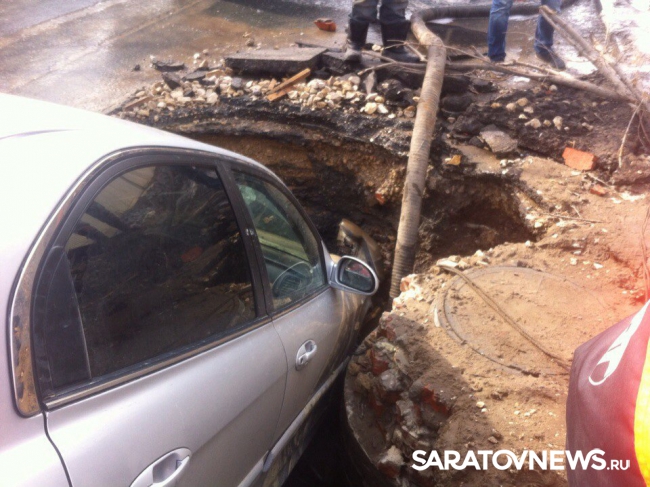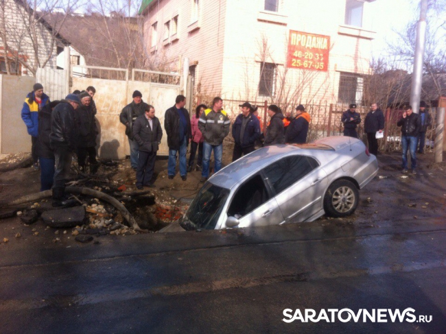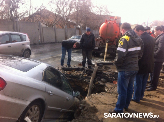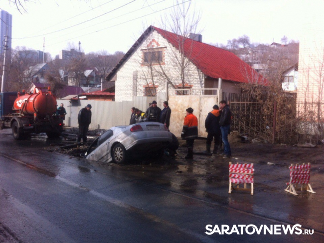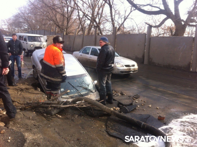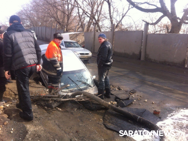 По словам водителя приехавшие на место дорожные службы сказали ему, что яма – дело рук "Саратовводоканала". По словам женщины, живущей в доме напротив места аварии, раскопали ее еще в субботу. "У нас отключили воду, а в воскресенье вода уже была в домах, правда лужу так и не закопали. Больше никаких работ там больше не проводилось", - отметила Марина.