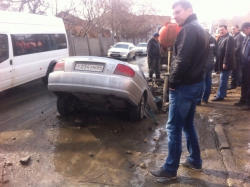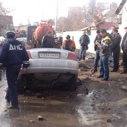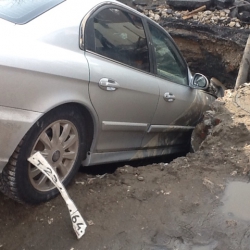 К счастью, в результате случившегося сам водитель травм не получил. В настоящее время он ожидает эвакуатор, который достанет автомобиль из ямы.