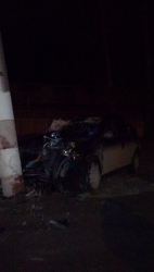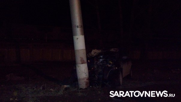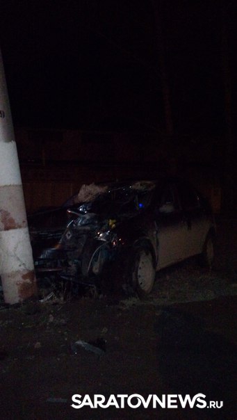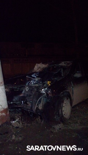 Вчера в Балаково Саратовской области на улице Транпсортная автомобиль "Рено Логан" врезался в столб.