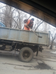 "На Трофимовском мосту в полную силу идет ремонт дорожного покрытия. А именно: стоит ЗИЛ с табличкой "уборка города" и из кузова рабочий лопатой закидывает ямы землей... ЗЕМЛЕЙ, КАРЛ! Той, что соскребли с тротуаров... так вот ты какой, новый асфальт!!!", - пишет негодующий очевидец.