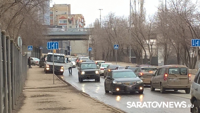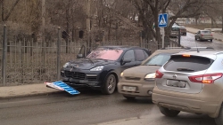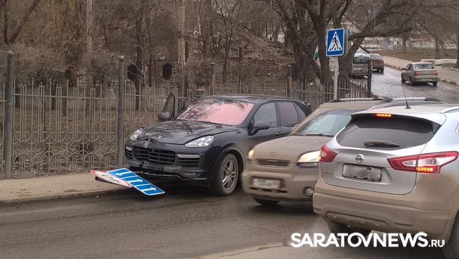 Сегодня под мостом Саратов-Энгельс в областном центре случилось ДТП. Утром автомобиль "Порше Кайен", который двигался по улице Большая Затонская, не справился с управлением и заехал на тротуар.