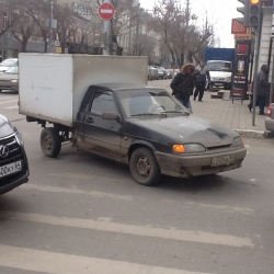 Пешеход переходила проезжую часть на перекрестке и попала под микрогрузовик ВИС 234700-30, именуемый в народе "пирожком". Женщина жива; ей вызвали "скорую помощь". На капоте автомобиля осталась небольшая вмятина.
