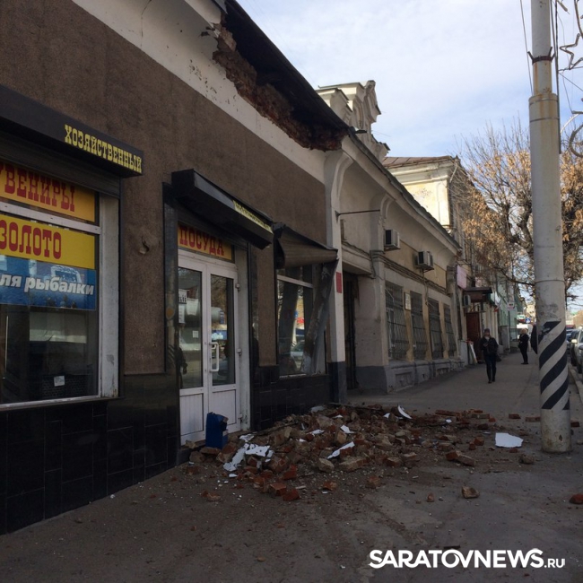 "Несколько минут назад обвалилась крыша на центральной улице Саратова. Скоро и балконы обвалятся. Мы в соседнем офисе неоднократно обращались в администрацию с этим вопросом: нехотя приезжают и оббивают бока балкона или крыши, и вот до чего дождались!!!", - сообщили очевидцы.