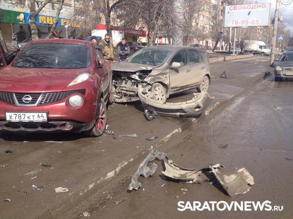 В Заводском районе Саратова произошла массовая авария с участием четырех иномарок. Как сообщают пользователи в социальной сети, "Форд Фокус" разворачивался напротив дома №10 по улице Чернышевского, в этом время по полосе встречного движения ехал "Порше Кайен". Уходя от столкновения, "Порше" протаранил две припаркованные у обочины машины – "Ниссан Джук" и "Ниссан Ноут".
