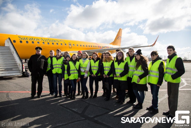 В рамках Пятой Всероссийской недели высоких технологий и технопредпринимательства авиапредприятие "Саратовские авиалинии" посетили с экскурсией старшеклассники лицея математики и информатики, лицея прикладных наук Саратова. Учащихся сопровождали педагоги и журналисты. В аэропорту экскурсантов встретили сотрудники служб авиакомпании и командир воздушного судна Embraer 190 - Владимир Урих, пилот, имеющий 17,5 тысяч часов налета. Перед началом экскурсии участники прошли обязательный инструктаж по технике безопасности, необходимый контроль, после чего, в специальных сигнальных жилетах на автобусе аэропорта отправились на летное поле.
