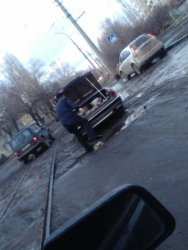 Как сообщает автор фото, действия разворачиваются на улице Огородной в Заводском районе Саратова, которая после зимы стала практически непригодной для проезда и вошла в список аварийных дорог, требующих ремонта в первую очередь.