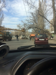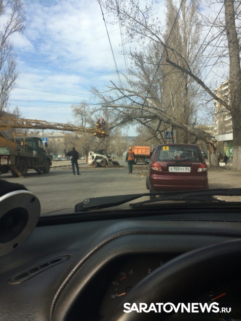 Сегодня днем на проспекте Энтузиастов в Саратове на проезжую часть упал огромный тополь, перекрыв движение по одной из полос. В сторону центра формируется "мертвая" пробка. Объехать упавшее дерево особенно трудно, потому что на этом участке дороги на середине улицы проложены трамвайные пути.