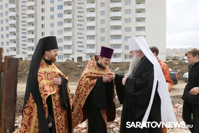Вчера, 13 апреля, митрополит Саратовский и Вольский Лонгин совершил чин основания нового храма во имя святителя Спиридона Тримифунтского в поселке Солнечный-2. Новая церковь вместит 500 человек. Строительство началось в прошлом месяце и идет параллельно с возведением жилых домов вокруг. Мощи святителя Спиридона уже несколько лет находится в городе: икона с частицей мощей, привезенной с острова Корфу, пока находится в храме Сергия Радонежского.