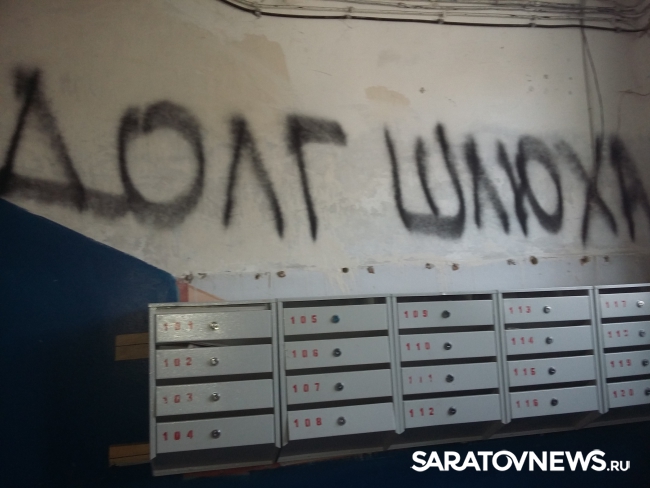 В редакцию Saratovnews обратились жильцы дома №6 по Весеннему проезду Октябрьского района Саратова. По их словам, минувшей ночью их подъезд изуродовали коллекторы.