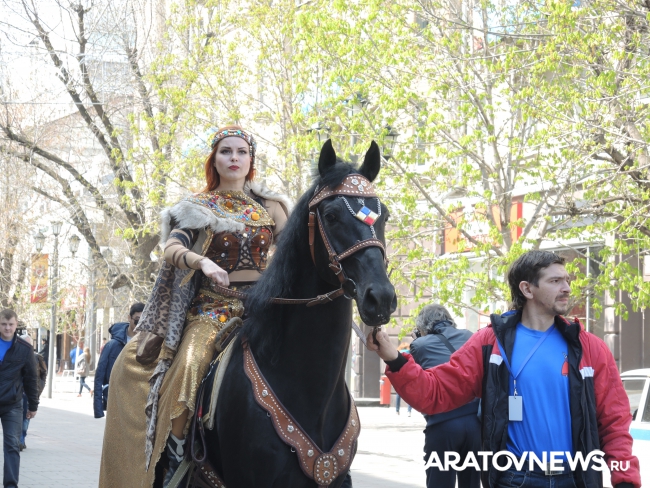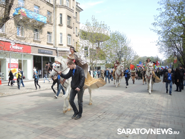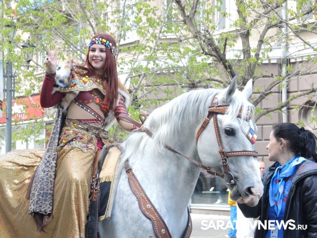 Участницы фестиваля "Принцесса цирка" прошли конной кавалькадой по главной улице Саратова - проспекту Кирова. Представительницы 12 стран мира, в сопровождении военного оркестра, цирковых артисток на конях, директора саратовского цирка Ивана Кузьмина и гендиректора "Росгосцирка" Вадима Гаглоева прошли от фонтана у консерватории до площади Кирова. Всего в мероприятии приняли участие более сотни участников, в том числе студентов, и школьников.