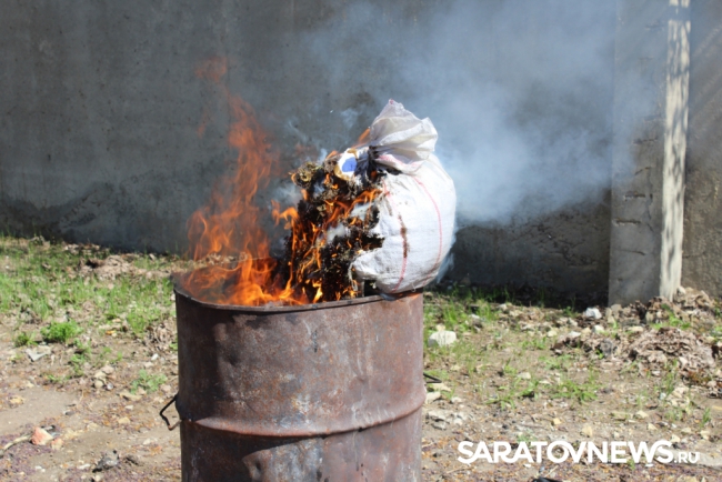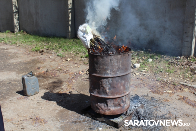 Сотрудники УФСКН по Саратовской области провели плановое уничтожение наркотических средств - доказательств по 62-м расследованным уголовным делам.