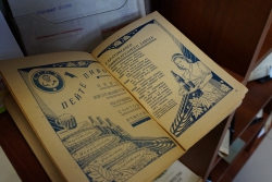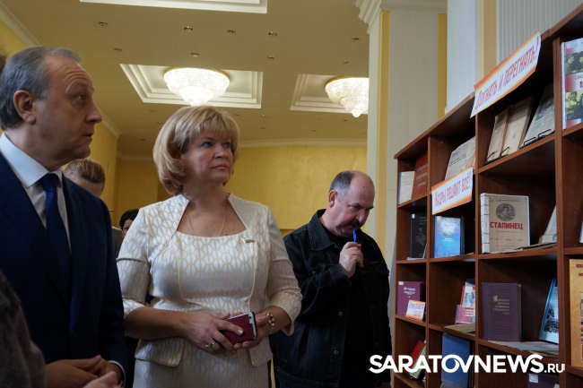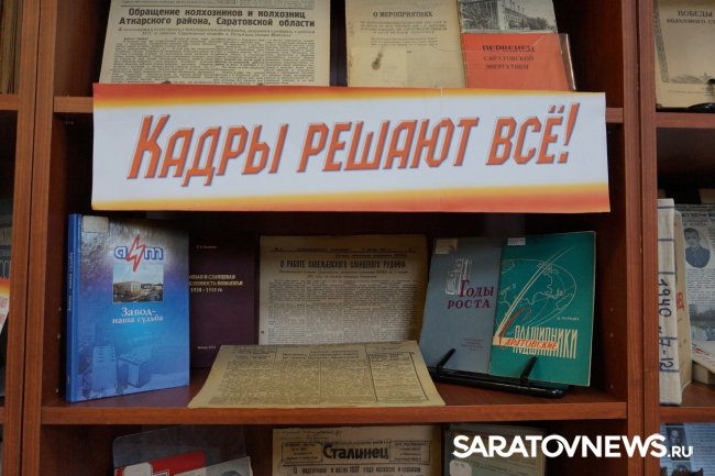 Перед заседанием правительства глава региона осмотрел выставку книг и газет прошлого века. Он обратил внимание за лозунг "Кадры решают все!", пояснив, что лозунг таков, потому что "тогда было такое время". Затем Радаев процитировал фразу "Наши цели ясны, задачи определены, за работу, товарищи!".