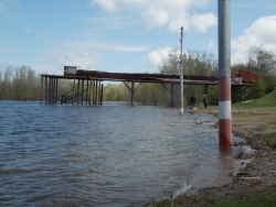 На фотографиях изображена переправа на Березняки, элеватор, возле которого "вода шагнула за столбы", утонувший пляж, и спасательный пункт, отрезанный от "большой земли".
