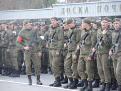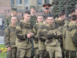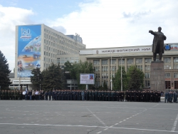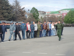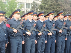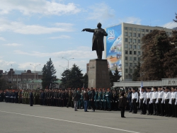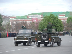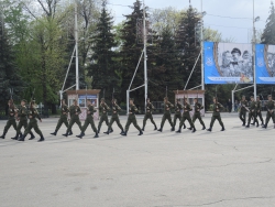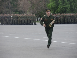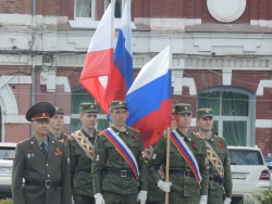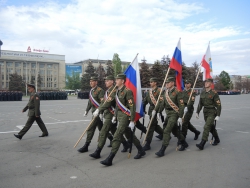 Затем на площади отрепетировали показательные выступления роты почетного караула и группы спецназа Саратовского военного института внутренних войск МВД России.