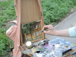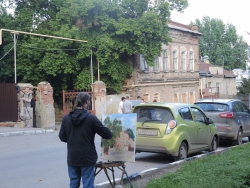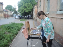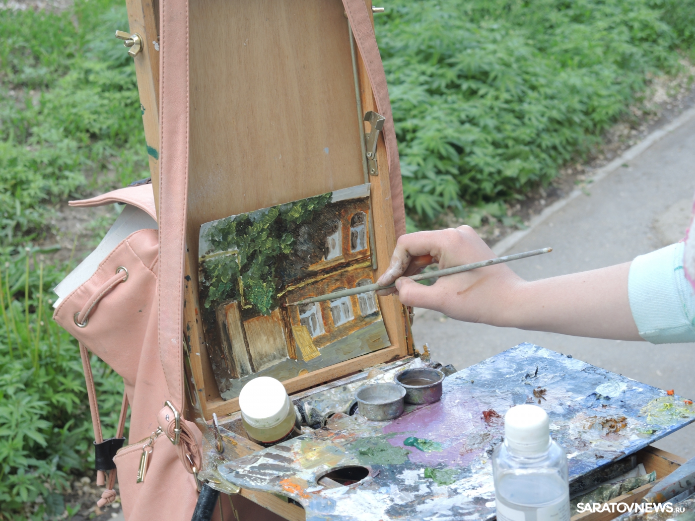 Еще одна площадка празднования была организована на Соляной, 30, в рамках проекта "Саратовская крепость: рассредоточенный музей истории города". Здесь во дворе дома художника Гектора Баракки около 16:00 стартовал городской пленэр. Одними из первых акцию поддержали студентки саратовского художественного училища имени Боголюбова Лиза Шевелева и Александра Батурина. За час девушки создали солнечные картины фасада дома художника. Во дворе дома для художников был выставлен натюрморт.