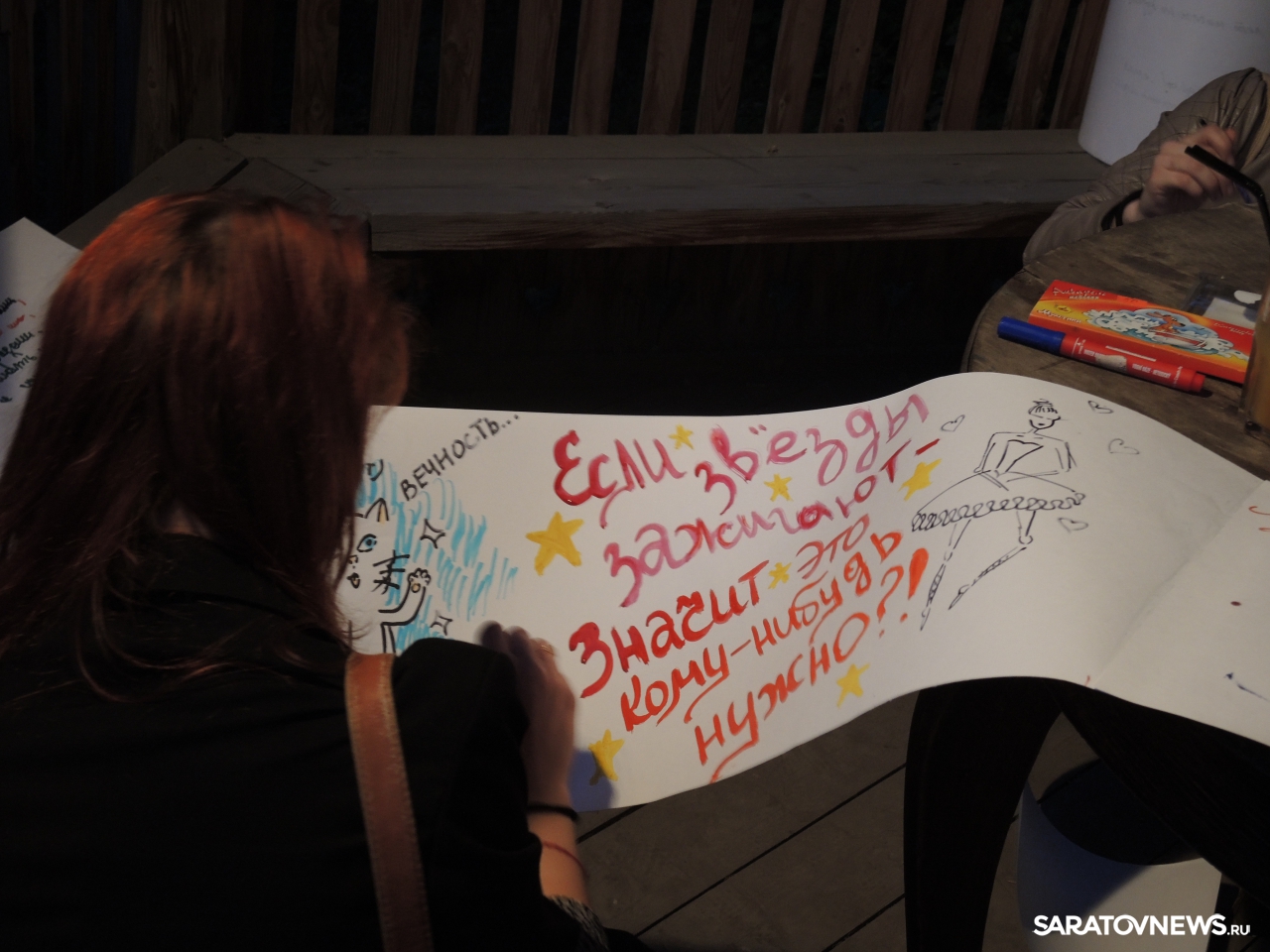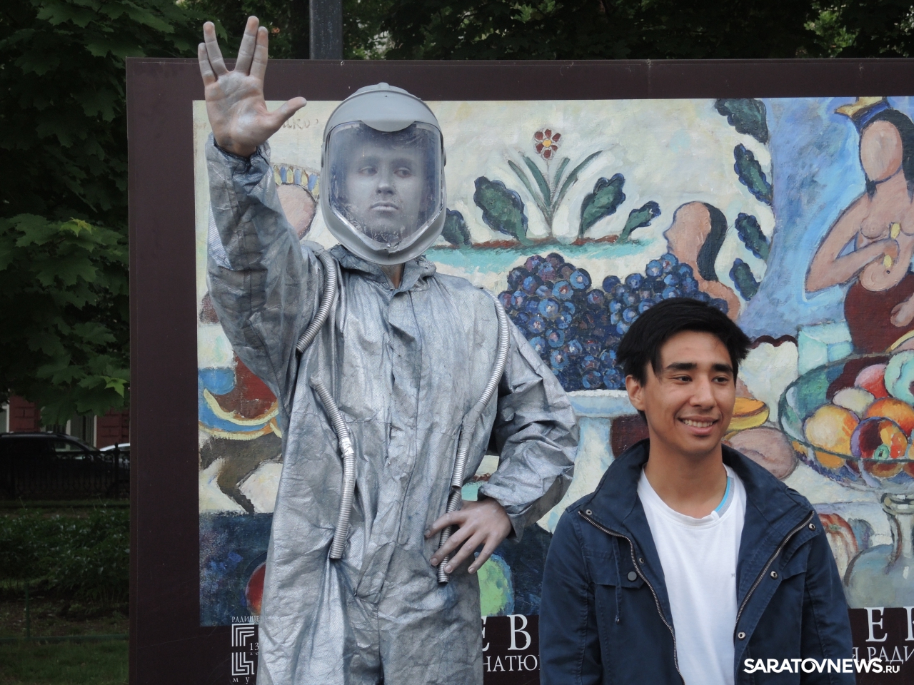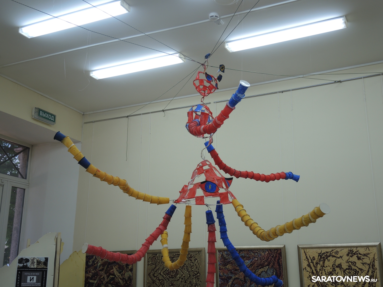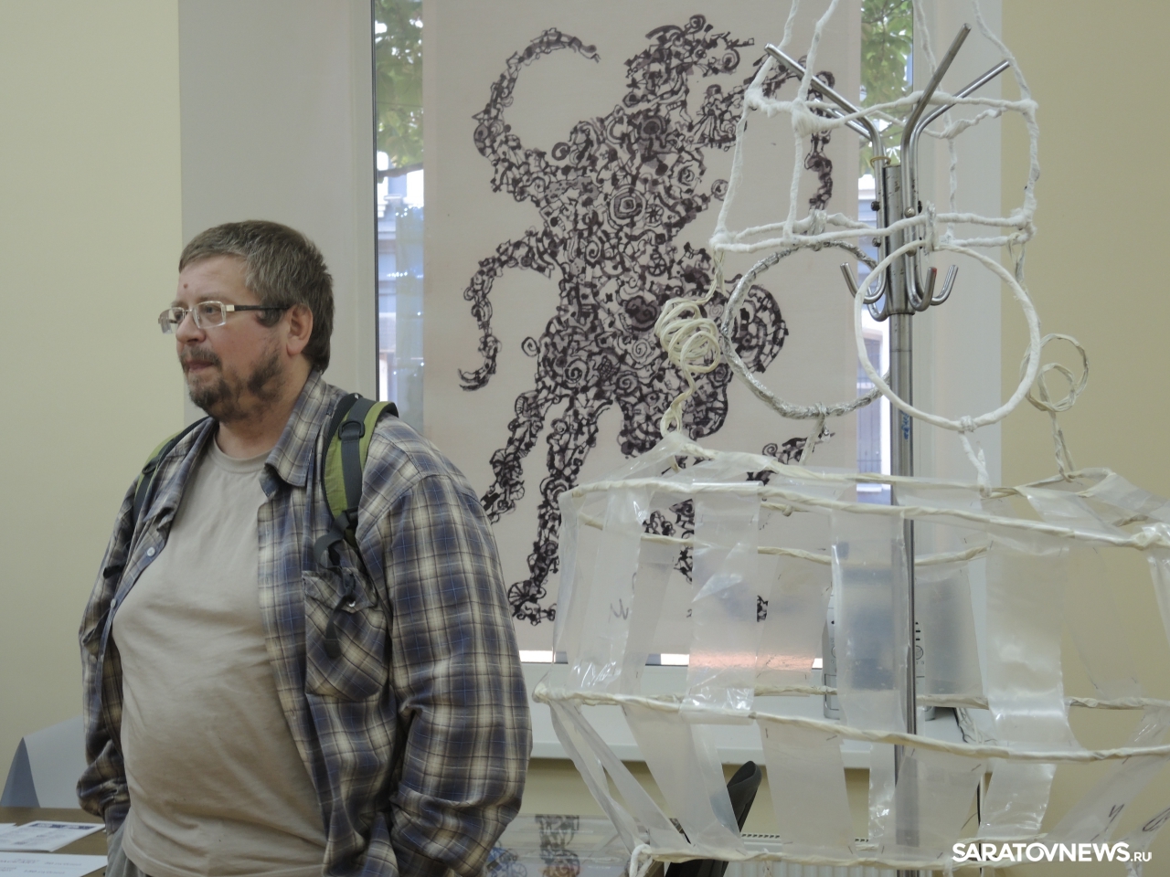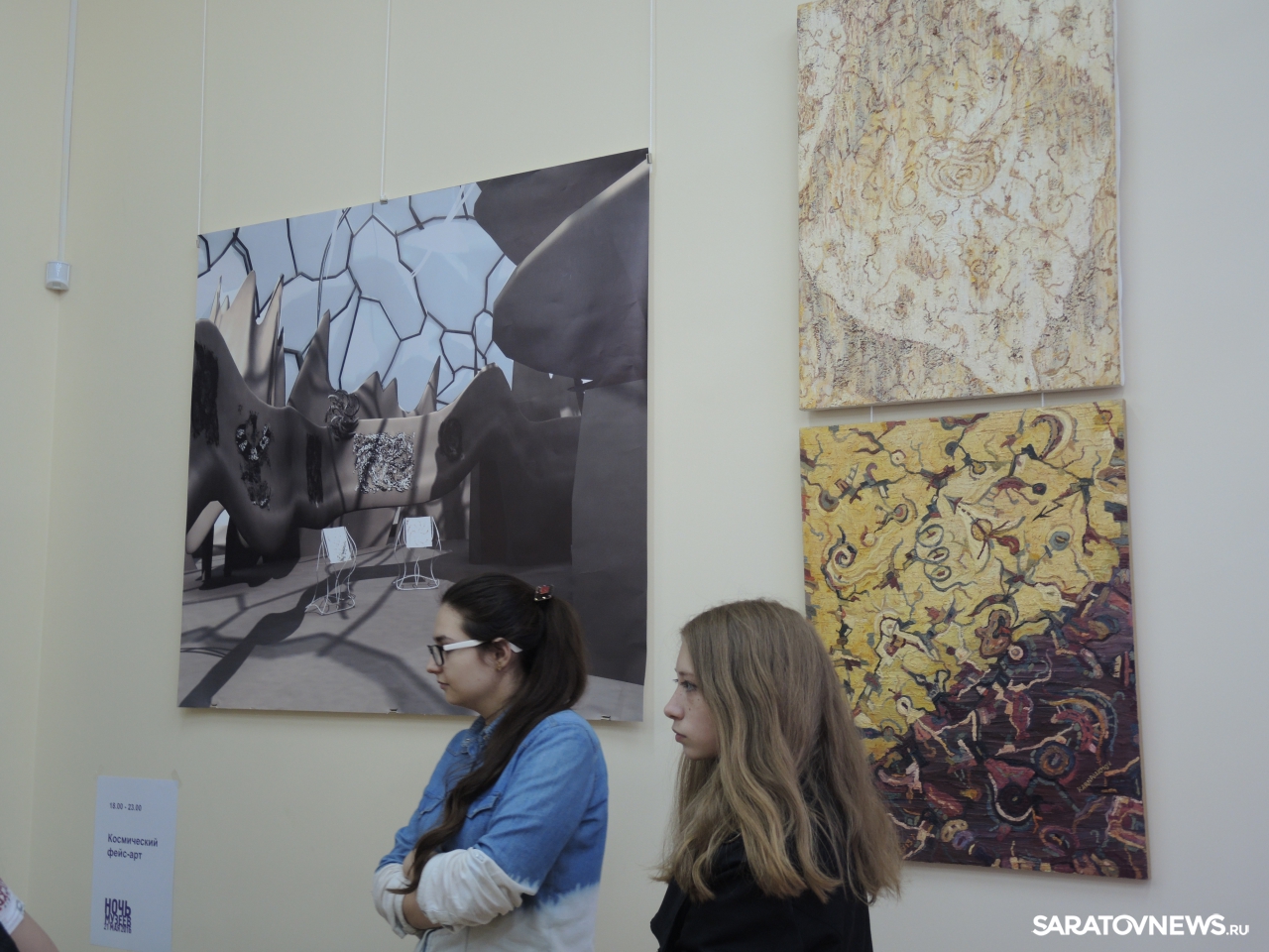 В здании Радищевского музея на улице Первомайская создали фантастическое пространство News Space Art. Художник Алексей Карнаухов представил живописные и графические работы, а также и арт-объекты - фигуры Марсианина и Марсианки, их летательный аппарат, их одежду. Все это время в залах на Первомайской играла инопланетная музыка.