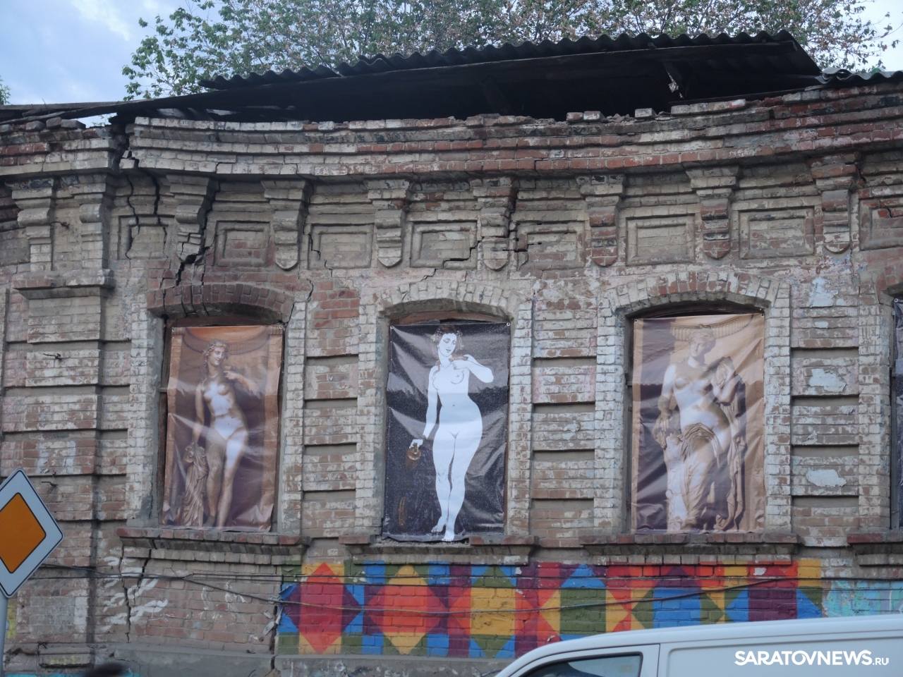 Рядом с домом-музеем Павла Кузнецова, в здании на Валовой, 94, где недавно был пожар, прошла выставка Леонида Петрушина из Москвы. Он показал "Пигмалион" - в окнах дома была выставлена графика известных античных женских статуй.