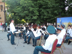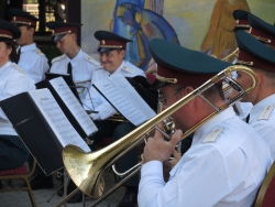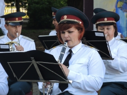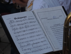 Для ожидающих играл оркестр Института МВД, который встречали аплодисментами. Напоследок музыканты исполнили песни военных лет, а также "Прощание Славянки".