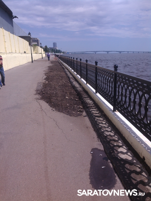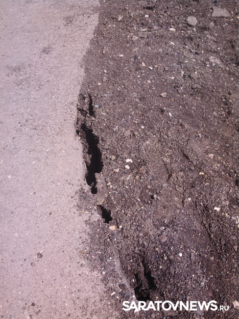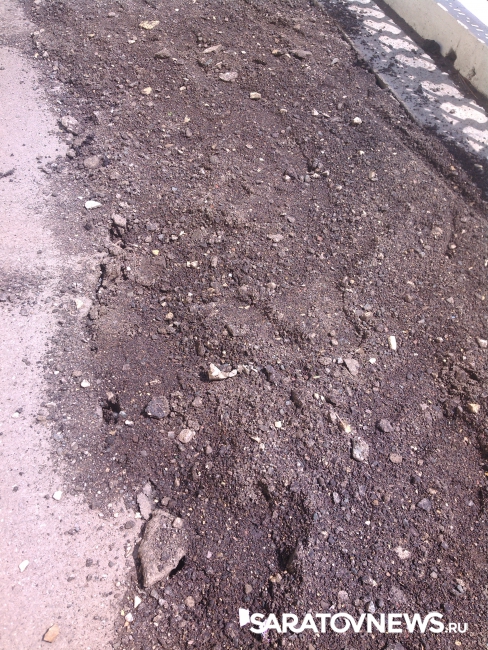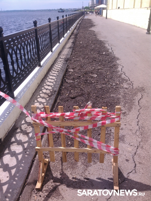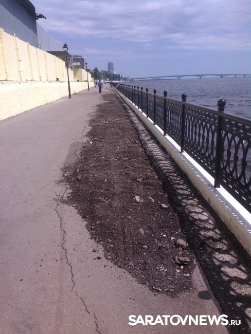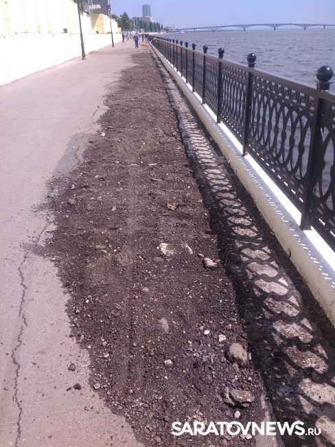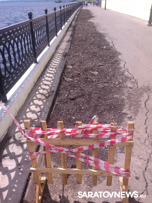 Провал на Новой Набережной в Саратове, о появлении которого сообщалось в понедельник, 23 мая, отремонтировали, но весьма своеобразно: его просто засыпали землей.