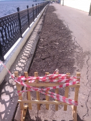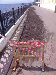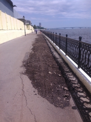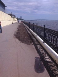 Напомним, история Новой Набережной в нашем городе началась в 2007 году. Первая очередь, от Провиантской до Вольской, была открыта в 2012 году. На следующий год завершили участок второй очереди – от Бабушкина взвоза до Провиантской. В настоящее время не закончены работы на третьей очереди, от Вольской до Большой Садовой, причем твердое покрытие набережной третьей очереди, которое успели сделать, уже разрушается.