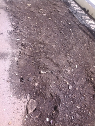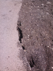 Субстанция, которой покрыли многометровый дефект на участке напротив комбикормового завода, возможно, содержит асфальт, но он смешан с обычным грунтом, не застывает и остается сыпучим. Ограждения, которые были выставлены рядом сразу после проседания асфальта, пока остаются на месте.