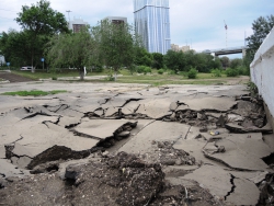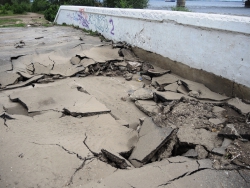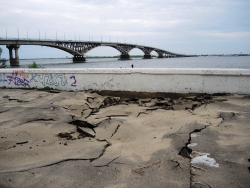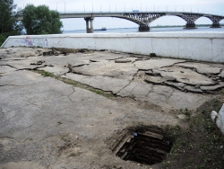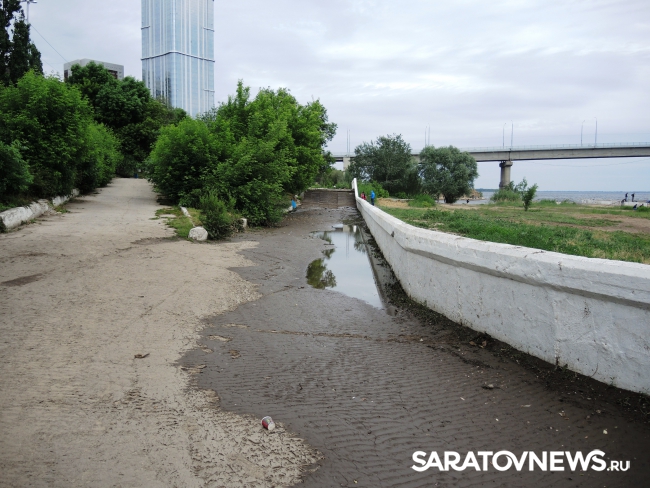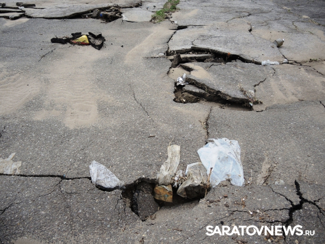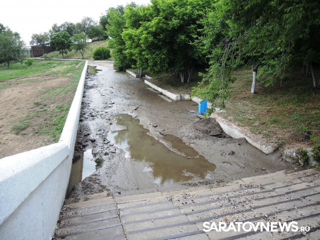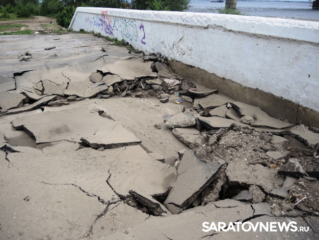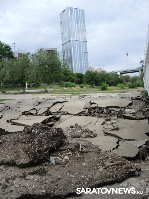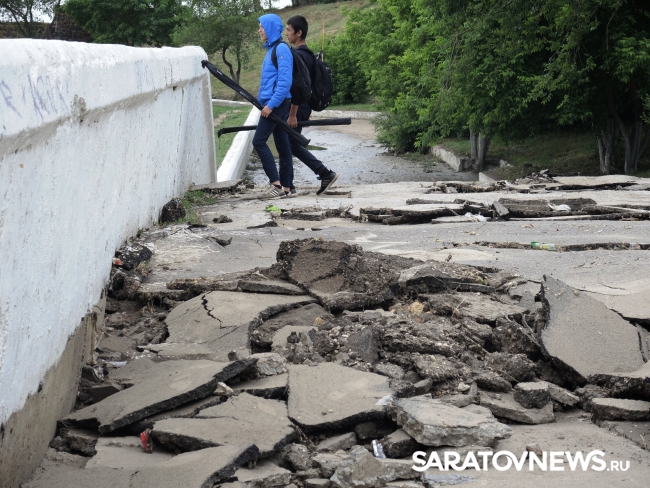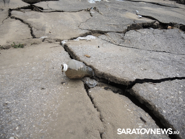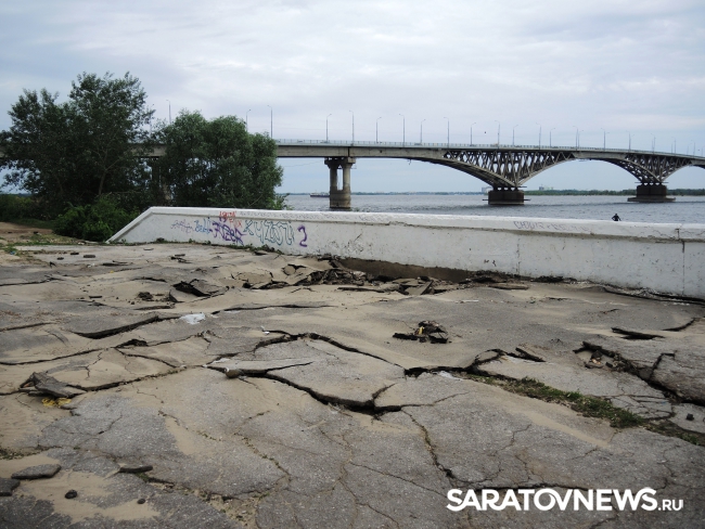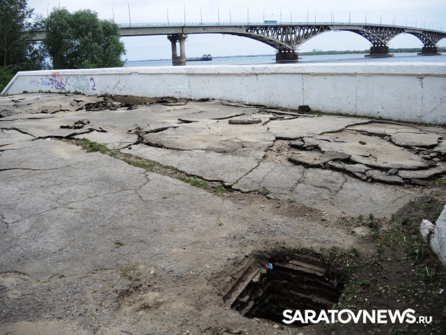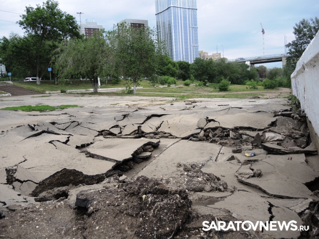 На саратовской набережной произошло очередной обрушение. На этот раз асфальтовое покрытие разрушилось на площадке в районе "дикого пляжа", ближе к мосту, ситуацию осложнил прошедший в минувший понедельник, 30 мая, ливень.
