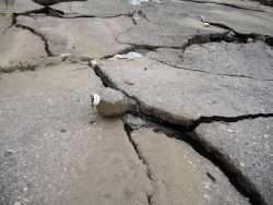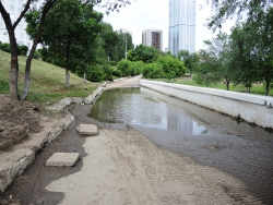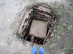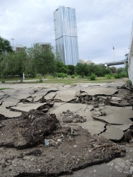 Не исключено, что причиной обрушения стал старый мусор, который вылез из-под треснувшего покрытия, и на который судя по всему и был уложен асфальт. Никаких ремонтных работ на площадке сейчас не ведется.