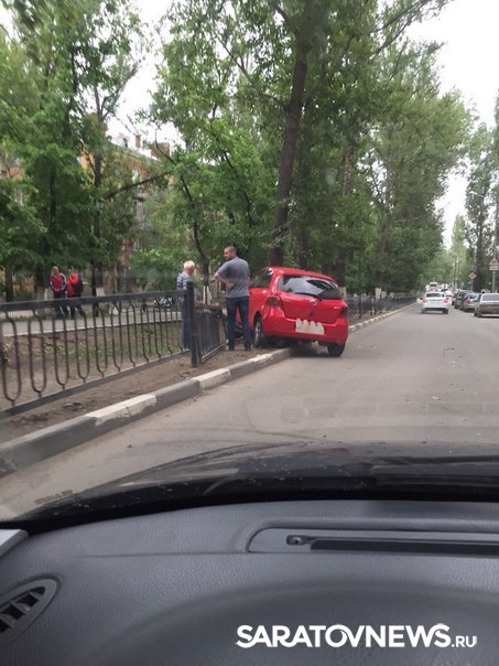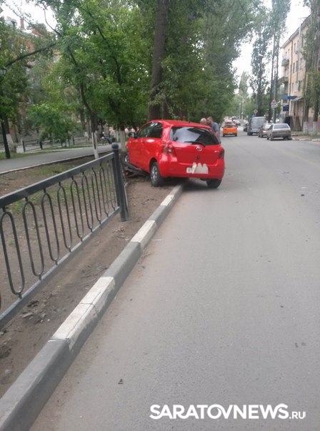 Сегодня на улице Ломоносова в Саратове красная "Тойота" снесла ограждение сквера и врезалась в дерево. Фоторепортаж с места происшествия опубликовали пользователи группы "ВКонтакте". Это случилось возле поликлиники №15 на изолированной полосе движения по направлению к проспекту Строителей.