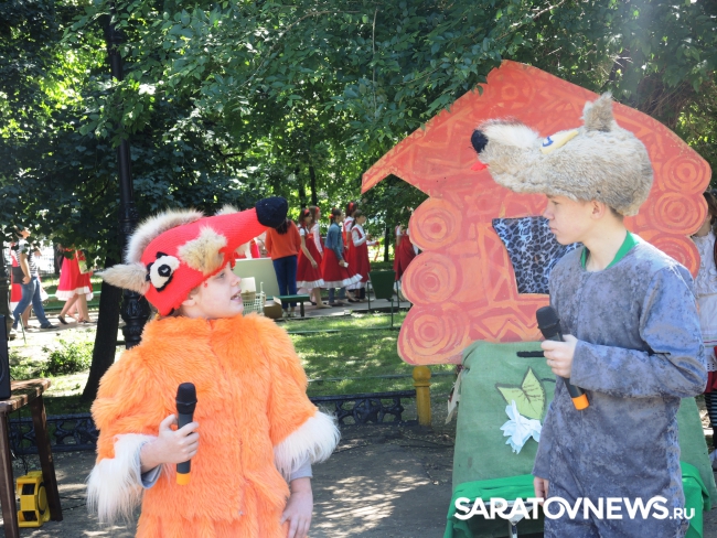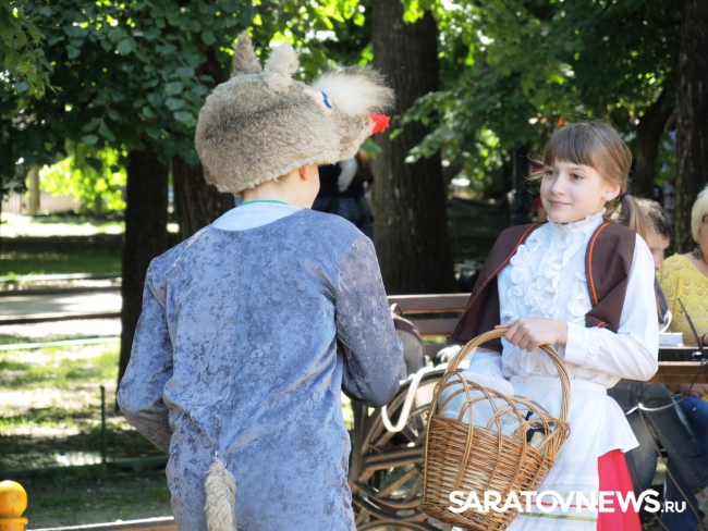 Так, в десять часов саратовцы увидели спектакль "Красная шапочка" на детской площадке парка. Маленькие зрители восхищались обаятельным волком, переживали за девочку, которая рисковала не попасть к бабушке и удивлялись хитрости лисицы. Артистами спектакля стали саратовские школьники.