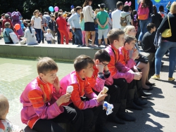 Тем временем в парке Липки работает еще несколько площадок для малышей. Детей сегодня угощают мороженым и сахарной ватой, проводится много конкурсов и викторин.