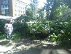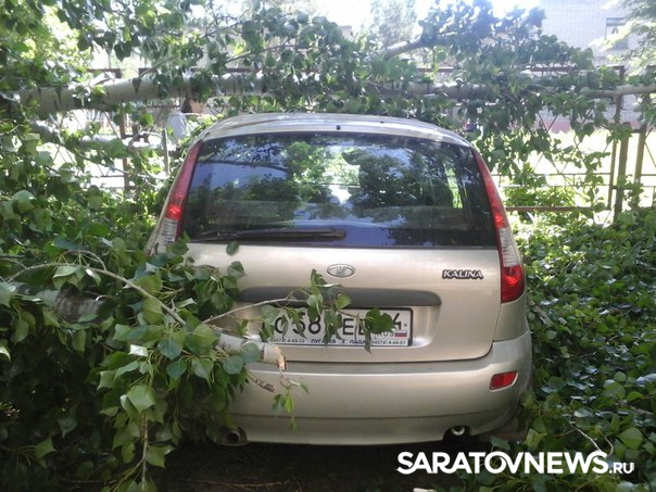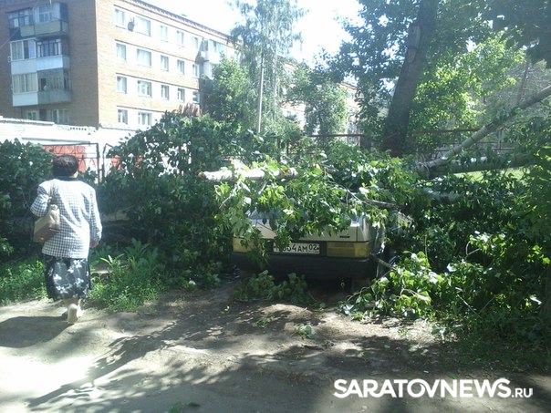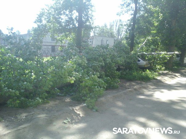 В Балакове Саратовской области рухнувший тополь придавил две припаркованные по дворе легковушки. Фотографии с места ЧП появились сегодня, 1 июня, в группе "Типичный Балаково". По словам очевидцев, инцидент произошел на улице Факел Социализма.