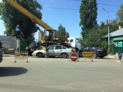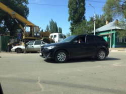 Сегодня утром на пересечении Большой Горной и Симбирской произошла авария с участием автокрана. По словам очевидцев, один из участников аварии не заметил знаки о работах, которые ведутся на участке улицы, попытался вырулить, но столкнулся с следующей в попутном направлении второй иномаркой. От удара обе машины оказались под автокраном.