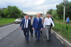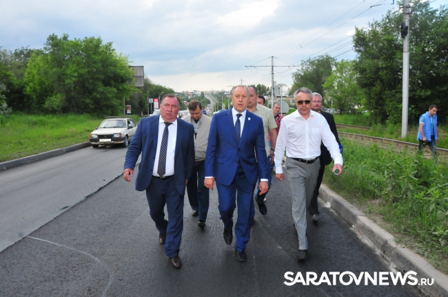 Осмотрели главы и ход ремонта улицы Большая Кумысная, которая связывает Заводской, Ленинский и Фрунзенский районы города. Подрядчик рассказал, что в день ремонтируется порядка 300-400 метров, а ремонт дороги протяженностью 13 километров, планируется завершить за 10 дней. Губернатор поручил рассмотреть вопрос о полном ремонте этой трассы, поскольку она имеет не только городское значение, но и обеспечивает кратчайший выезд на федеральную трассу.